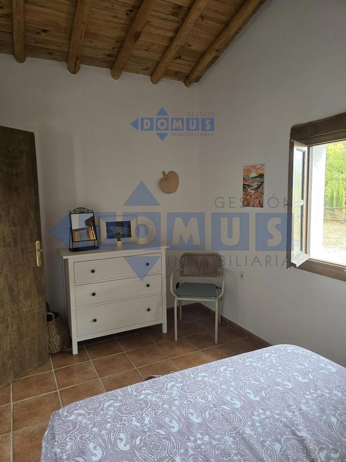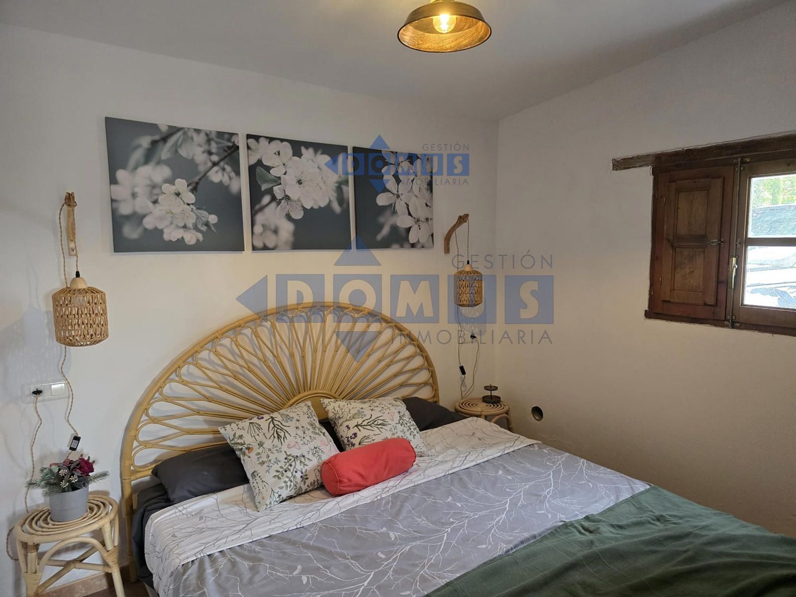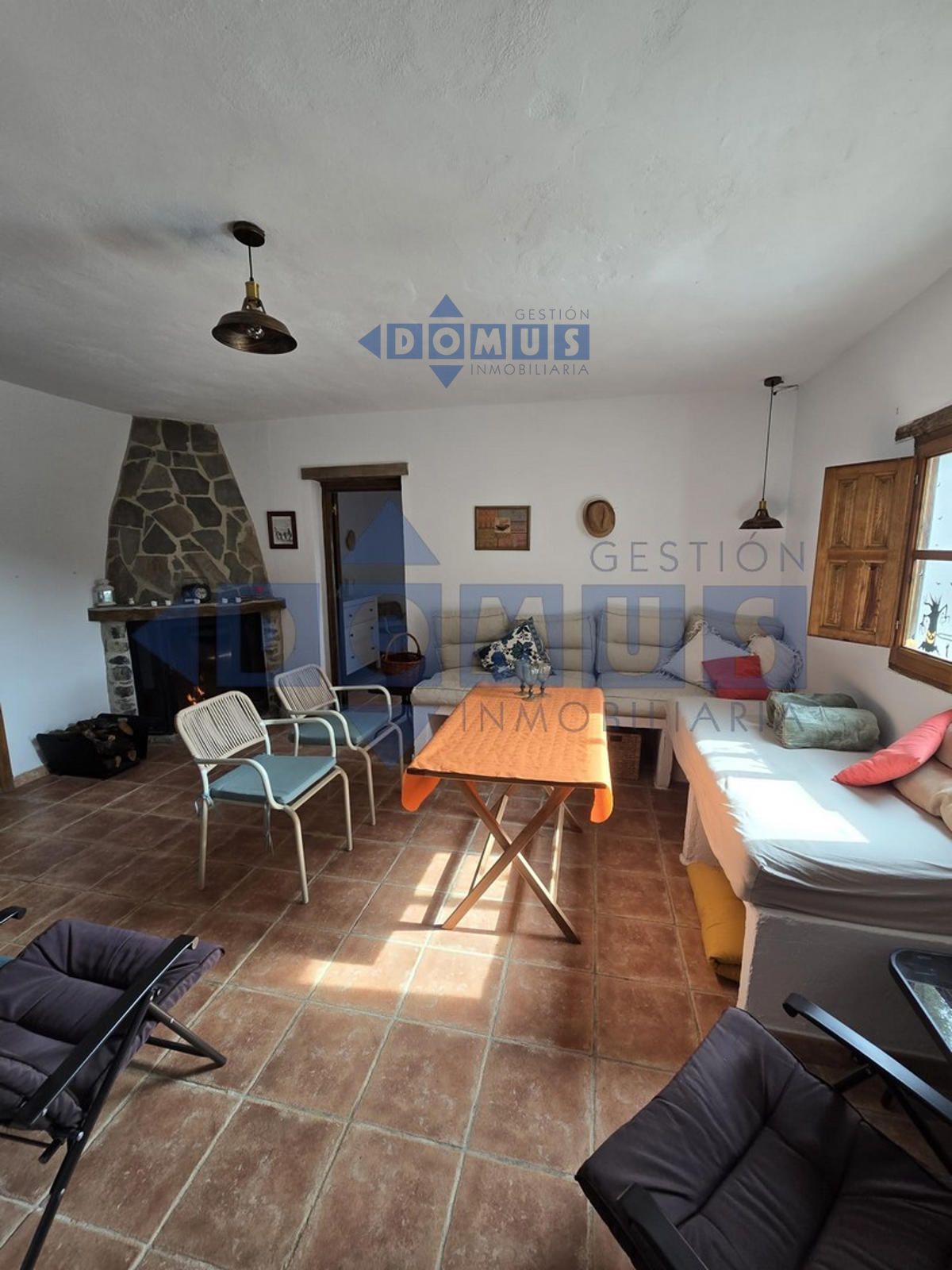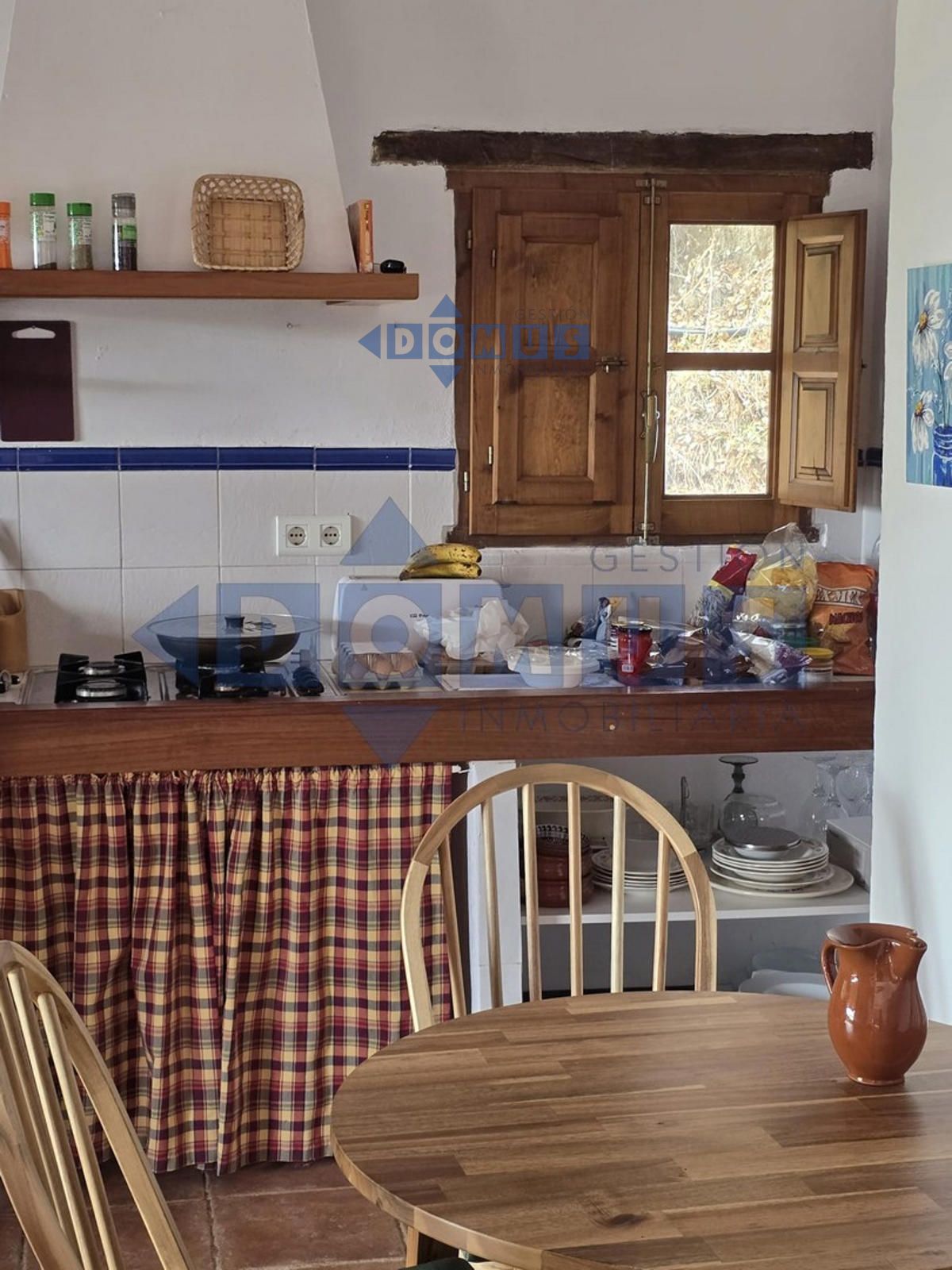 La vivienda, de aproximadamente 80 m², está distribuida de forma funcional y cómoda. Dispone de dos habitaciones luminosas, un amplio salón con chimenea ideal para los meses de invierno, una cocina completamente equipada y un baño con ducha.